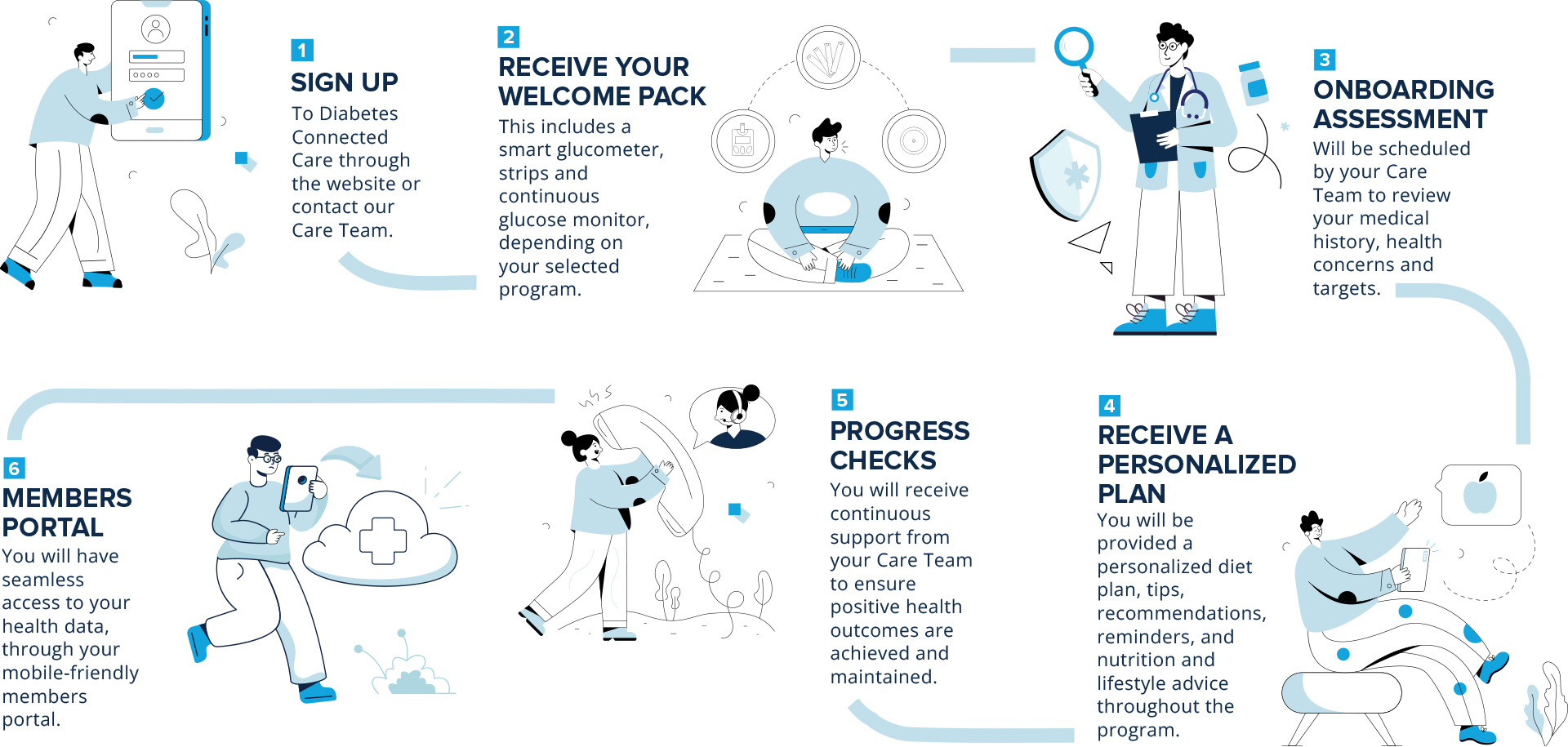 A diagnosis of diabetes can be overwhelming. Especially when trying to adhere to your care plan, monitor your blood sugar regularly, and make healthy choices, all without constant support and motivation. The Diabetes Connected Care Program is your all-in-one guide to help you live and thrive with diabetes.